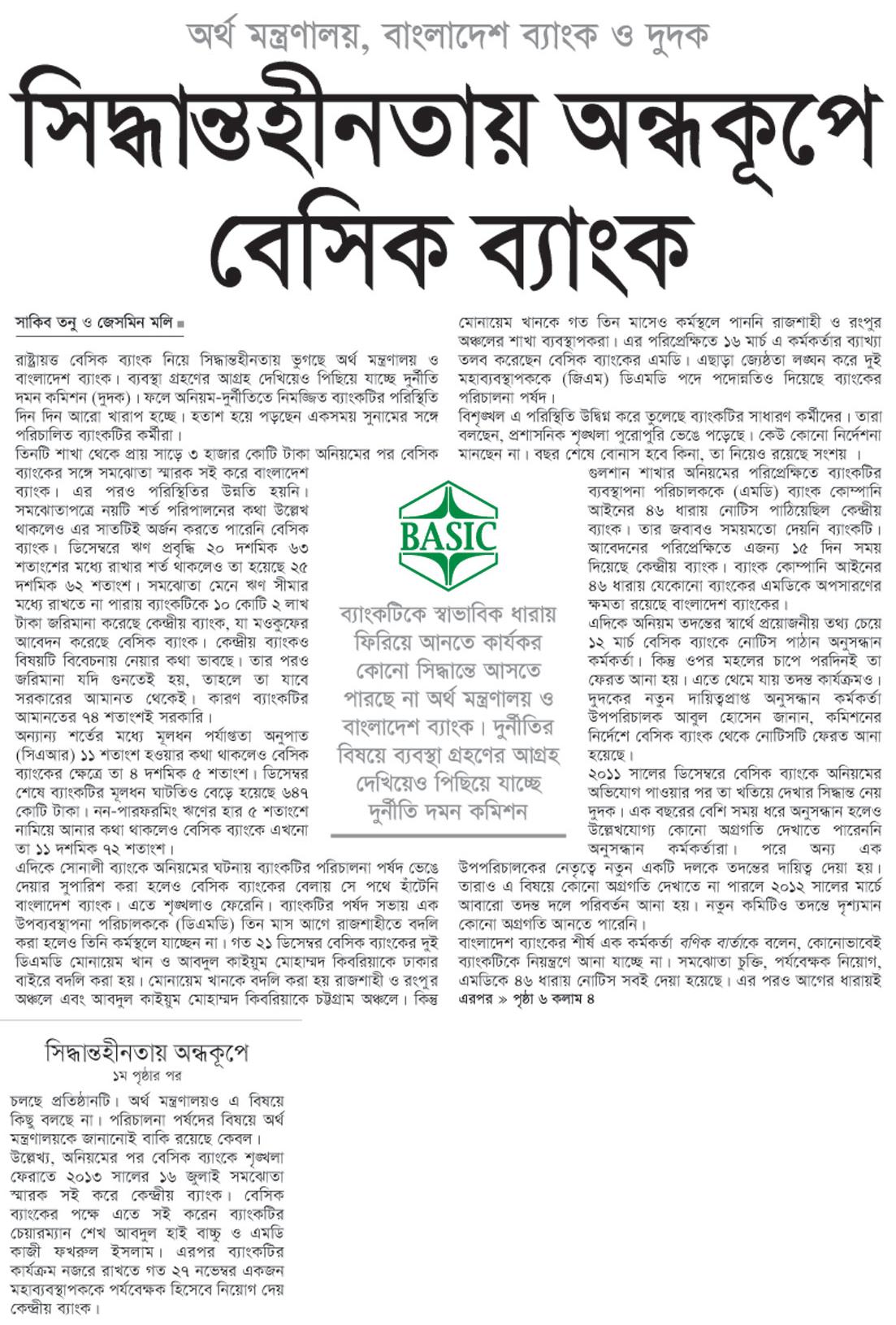 রাষ্ট্রায়ত্ত বেসিক ব্যাংক নিয়ে সিদ্ধান্তহীনতায় ভুগছে অর্থ মন্ত্রণালয় ও বাংলাদেশ ব্যাংক। ব্যবস্থা গ্রহণের আগ্রহ দেখিয়েও পিছিয়ে যাচ্ছে দুর্নীতি দমন কমিশন (দুদক)। ফলে অনিয়ম-দুর্নীতিতে নিমজ্জিত ব্যাংকটির পরিস্থিতি দিন দিন আরো খারাপ হচ্ছে। হতাশ হয়ে পড়ছেন একসময় সুনামের সঙ্গে পরিচালিত ব্যাংকটির কর্মীরা।