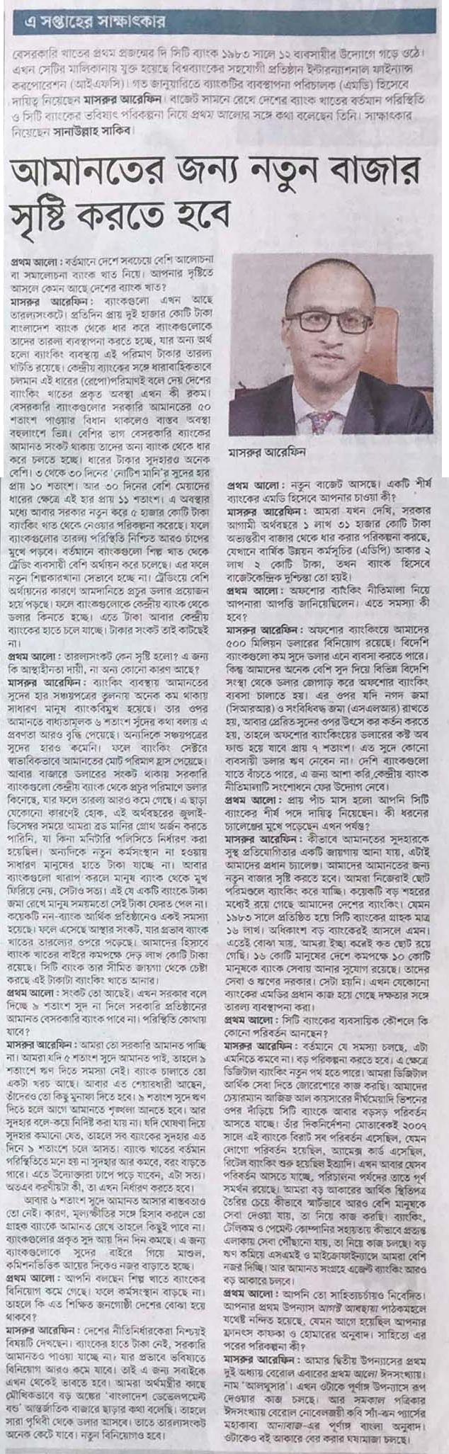 সিটি ব্যাংক এমডি মাসরুর আরেফিন