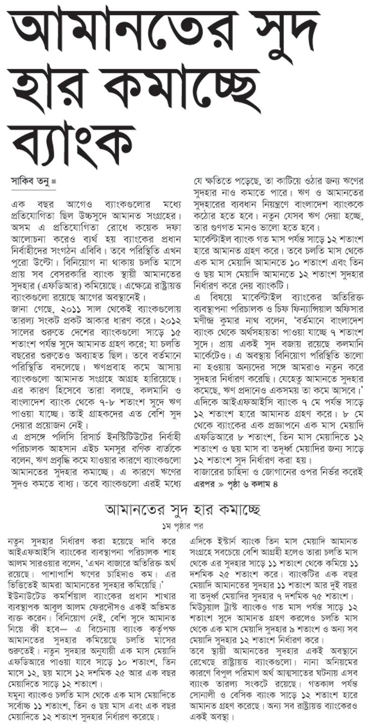 আমানতের সুদ হার কমাচ্ছে ব্যাংক