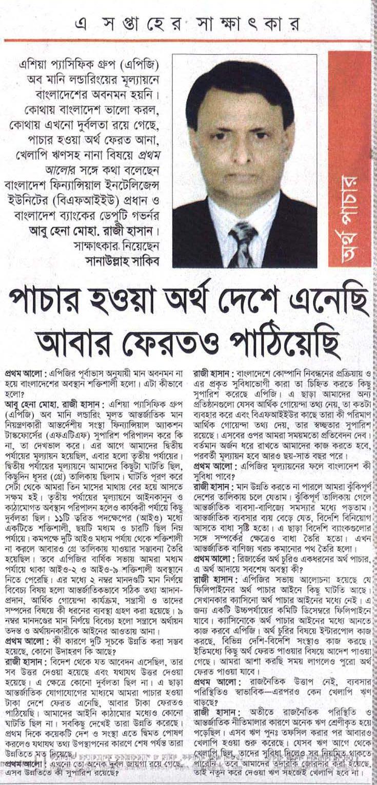 in অর্থ পাচার, ব্যাংক দুর্নীতি, সাক্ষাত্কার
